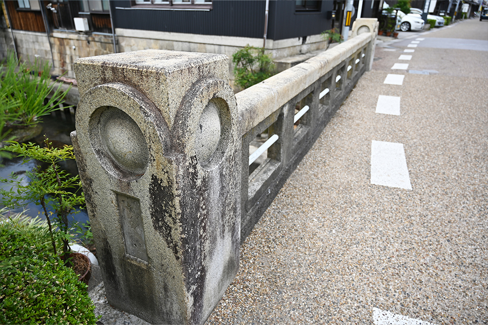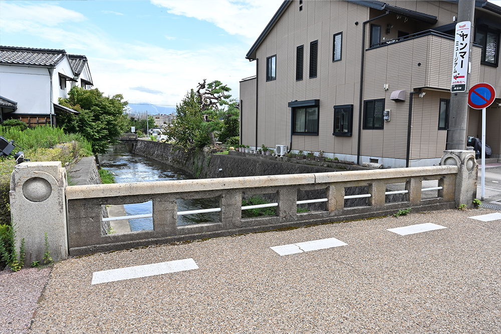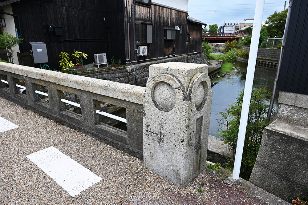 十一川の架設された長浜町南の玄関に当る橋。石造の親柱に玉状の意匠が入る手の込んだ造り。橋銘板・欄干の鉄格子は戦時中の供出に出されたという。近代構造物の一つ。