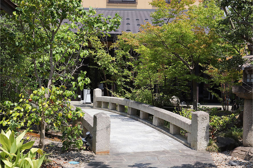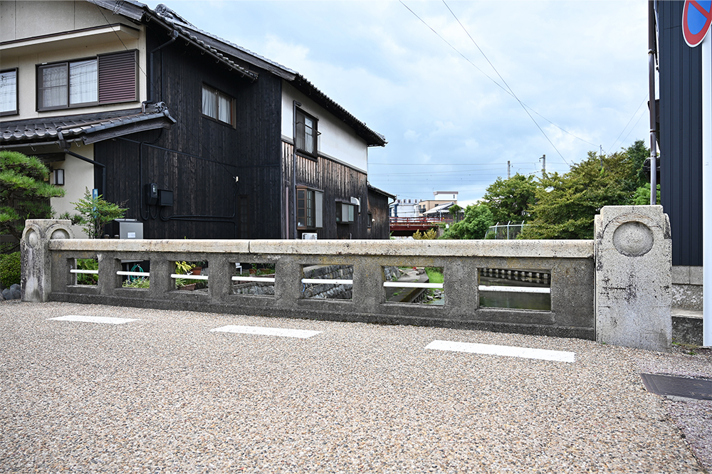 東西御堂前町と十軒町の米川に架設されていた旧橋で、現在は浜湖月玄関前に移設されている。今架かる「針屋橋」は、平成元……